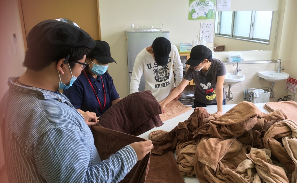 『まぁぶる』では就労移行・就労継続(A・B型)支援事業として、ボリュームが自慢のモーニング、肉・魚・魚介類を使ったシェフこだわりのランチ、1つ1つ手作りのケーキとコーヒーが人気の喫茶、地元スーパーにも販売を広げている燻製工房を運営しています。利用者さんはホール・厨房内で個々の特性に合わせて活動をしてもらっています。ホールではお客様の出迎え、オーダー聞きやお食事の配膳を、厨房では小鉢料理の調理・盛り付け、セットデザート作り、メイン料理の準備から燻製商品づくりまで、みんなで協力し合いながら進めています。最初は出来ないことも多くありますが、「なぜそれをするのか」、「どうやってその作業をするのか」ということを説明しながら、利用者さんがスキルアップ、仕事の幅を広げることを心がけながら支援をしています。また「人間力」の指導にも力を入れています。挨拶や言葉遣いも指導し、社会に出た時に通用する人材の育成を目指しています。